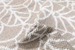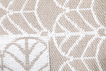 100% plastic where plastic straps are woven together and create rugs that are very durable and require minimal maintenance. Use mild detergent to remove any stains or wash at 30°C without any spinning cycle or tumble drying.